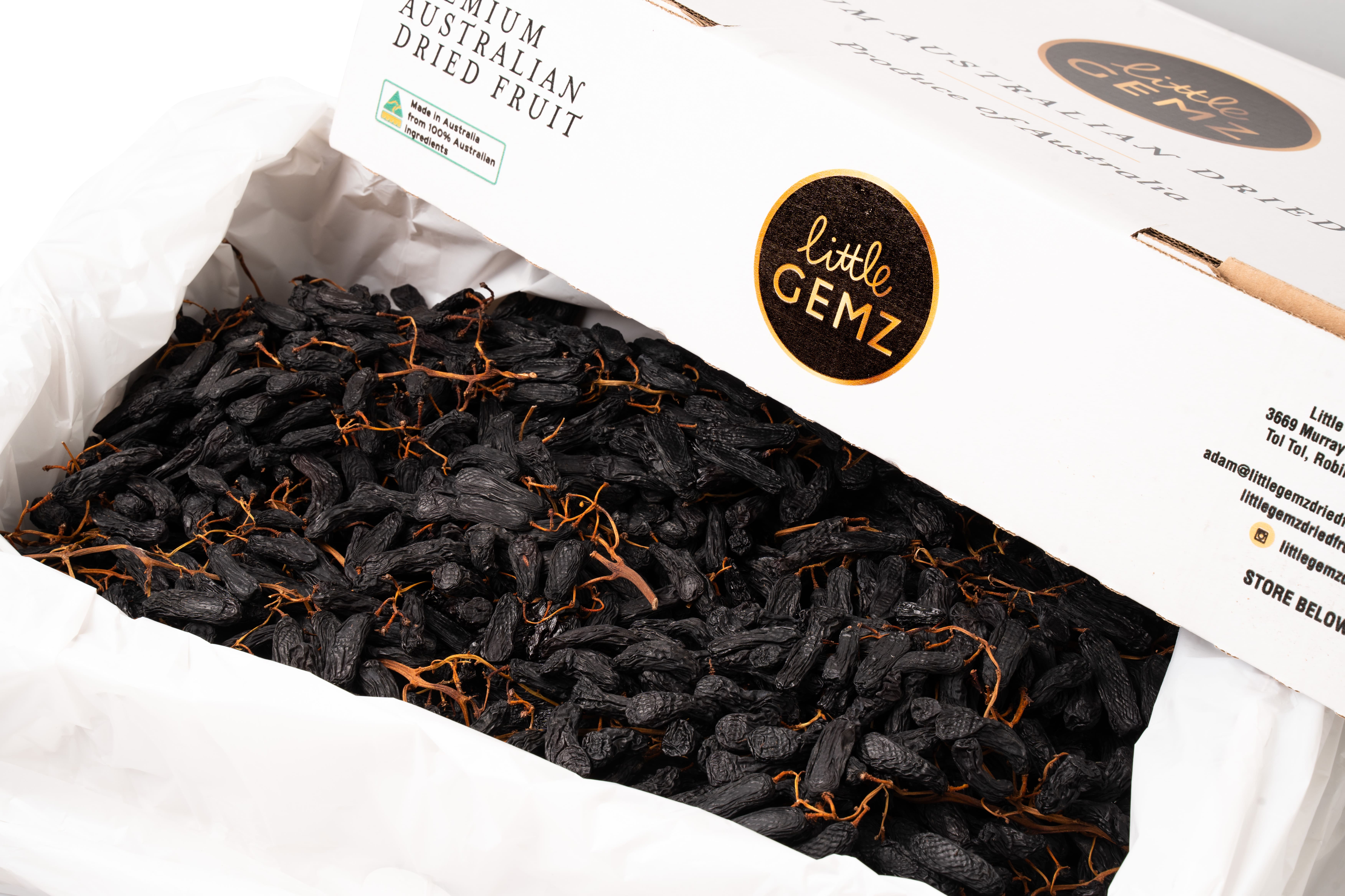 Nho khô nguyên cành là loại nho khô được phơi khô cả cành, khác với nho khô thông thường chỉ sấy quả. Chúng được sấy khô tự nhiên bằng ánh nắng mặt trời, giữ trọn vị ngọt thanh tự nhiên, không thêm đường hay chất bảo quản. Loại nho này có vỏ dai, ruột mềm dẻo và thường được sử dụng để ăn vặt, làm bánh, trang trí món ăn.